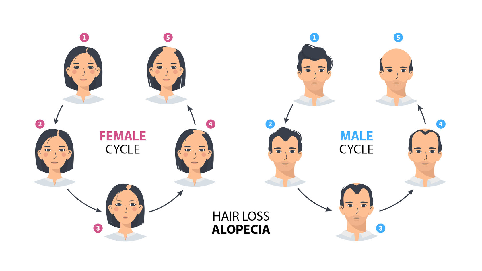 Алопеция ареата (очаговая алопеция): Стресс также может вызвать аутоиммунное состояние - алопеция ареата, при котором иммунная система атакует волосяные фолликулы, вызывая выпадение волос в виде круглых или овальных пятен без волос.