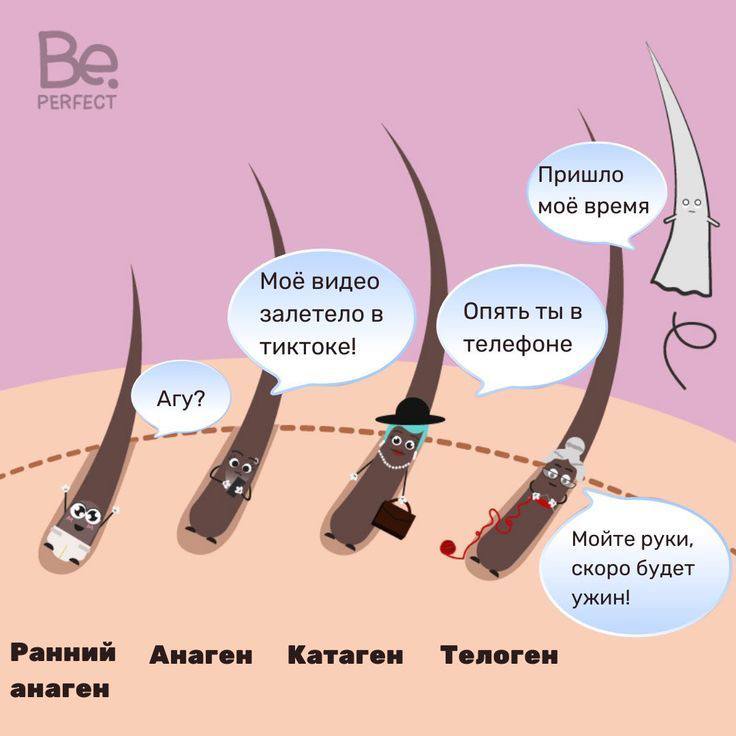 Получение достаточного количества питательных веществ и кислорода стимулирует клетки матрицы волосяного фолликула к делению и росту. Эти клетки формируют новые волосы, которые толкают старые волосы вверх.